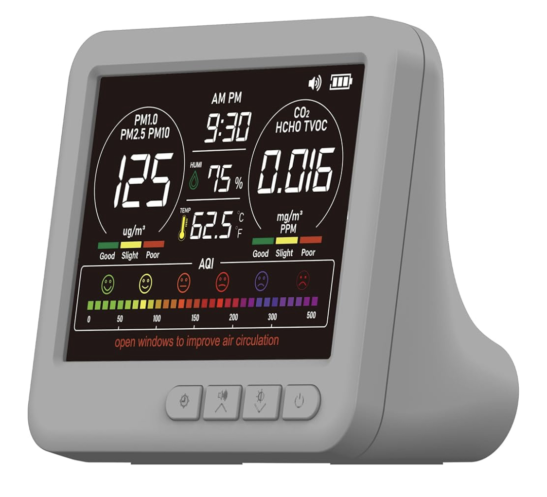An air quality monitor is a smart device designed to detect and display real-time data about indoor or outdoor air conditions. It measures pollutants like PM2.5, PM10, carbon dioxide (CO2), volatile organic compounds (VOCs), and sometimes humidity and temperature. Ideal for homes, offices, or nurseries, it helps ensure a safe breathing environment. Many models come with digital displays or connect to apps for remote monitoring. This device alerts users when air quality drops, promoting timely ventilation or purification. It’s especially useful for those with allergies, asthma, or respiratory conditions. Compact and easy to use. A valuable tool for healthier living.