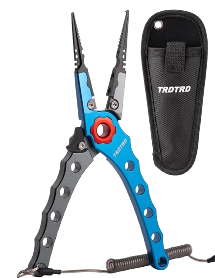 Crafted from durable, lightweight aluminum, these fishing pliers are built to withstand harsh saltwater conditions while offering effortless handling. Their corrosion-resistant design ensures long-lasting performance, making them a reliable tool for every angler. Equipped with sharp, replaceable tungsten carbide cutters, they slice through braided, mono, and fluorocarbon lines with ease. The ergonomic non-slip grips provide comfortable control, even when wet. A spring-loaded mechanism allows smooth one-handed operation, ideal for quick hook removals. The split-ring tip adds extra versatility for swapping out lures or repairing tackle. Designed for precision, the jaws offer a firm grip without damaging fish. A safety lanyard and sheath keep the pliers secure and within reach. Perfect for boat, shore, or kayak fishing, they elevate your gear with efficiency and reliability.