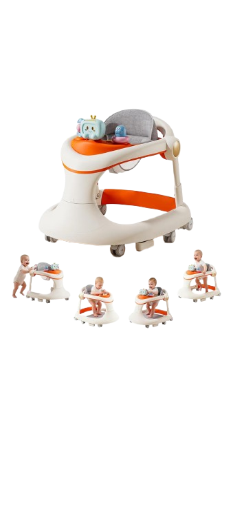 This baby walker is designed to support your little oneβs first steps while keeping them safe, comfortable, and entertained. Built with a sturdy frame and a wide base for added stability, it helps prevent tipping as your baby moves around with confidence. The padded seat offers gentle support and can be height-adjusted to grow with your child, while smooth-rolling wheels allow easy movement across different floor surfaces. Featuring a playful activity tray with engaging toys and sounds, this walker encourages sensory development and motor skills, making learning to walk a fun and enjoyable experience for both baby and parents.