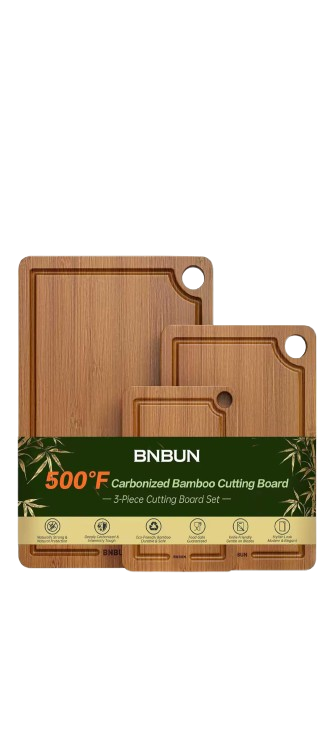 A bamboo cutting board is a durable, eco-friendly kitchen essential designed for everyday food preparation. Crafted from natural bamboo, it offers a smooth yet sturdy surface that is gentle on knives while remaining resistant to scratches and stains. Its lightweight yet solid construction makes it easy to handle, and the tight bamboo grain helps reduce moisture absorption and odor retention. Many designs feature built-in juice grooves to catch liquids from fruits, vegetables, or meats, keeping countertops clean and mess-free. With its warm, natural finish and sustainable material, a bamboo cutting board combines practicality, hygiene, and style, making it a reliable addition to any modern kitchen.