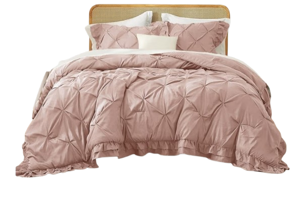 The blush pink comforter set adds a soft, elegant touch to any bedroom dΓ©cor.Designed with a soothing pastel tone, it creates a calm and inviting atmosphere.The comforter is made from high-quality, breathable fabric for year-round comfort.Its plush filling provides warmth without feeling heavy or bulky.The smooth texture feels gentle on the skin, ensuring a cozy nightβs sleep.This set includes matching pillow shams for a coordinated and stylish look.Durable stitching helps maintain shape and softness after repeated washes.The blush pink color blends beautifully with modern, classic, or minimalist interiors.Easy to care for, this comforter set is perfect for everyday luxury and comfort.