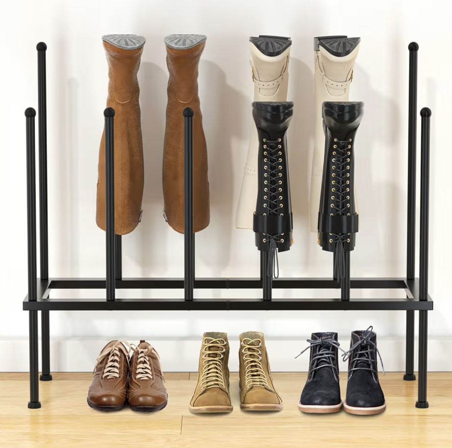 A boot rack is a practical storage solution designed to keep your footwear organized and easily accessible. With multiple tiers or vertical pegs, it holds boots upright to maintain their shape and prevent creasing. Ideal for entryways, mudrooms, or closets, it keeps floors clean and clutter-free. Made from durable materials like metal or wood, it adds both function and style to your space. Some models include drip trays to catch moisture from wet boots. Easy to assemble and move. Perfect for families or boot lovers. Keeps your footwear neat, dry, and ready to wear.