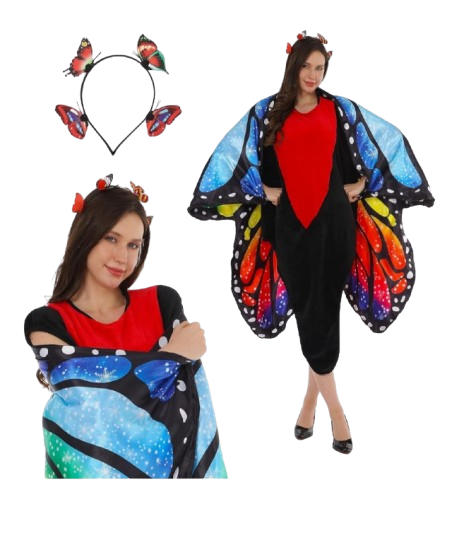 This beautiful butterfly costume is designed to inspire imagination and elegance, making it perfect for parties, performances, or dress-up play. Crafted from lightweight and comfortable materials, it features vibrant, colorful wings with eye-catching patterns that resemble a real butterflyβs delicate beauty. The costume is easy to wear and allows free movement, ensuring all-day comfort while dancing or playing. With its enchanting design and graceful details, this butterfly costume adds a magical touch to any occasion and makes the wearer feel truly special.