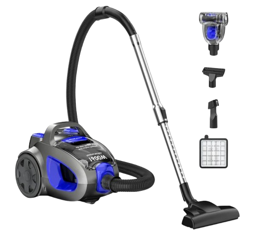 The canister vacuum cleaner is a versatile cleaning appliance designed to tackle dirt and dust on multiple surfaces with ease. Its compact and lightweight body makes it easy to maneuver around furniture and tight spaces. Equipped with a powerful suction motor, it ensures efficient removal of debris from carpets, rugs, and hard floors. The flexible hose and extendable wand provide extended reach for cleaning stairs, curtains, and ceilings. Multiple attachments, such as crevice tools and upholstery brushes, enhance its usability for different cleaning tasks. Its large dust bag or bin offers ample capacity, reducing the frequency of emptying. Advanced filtration technology helps capture fine dust and allergens, promoting cleaner indoor air. Smooth-rolling wheels and ergonomic handles ensure effortless movement during use. This canister vacuum cleaner combines performance, convenience, and durability to deliver a thorough cleaning experience.