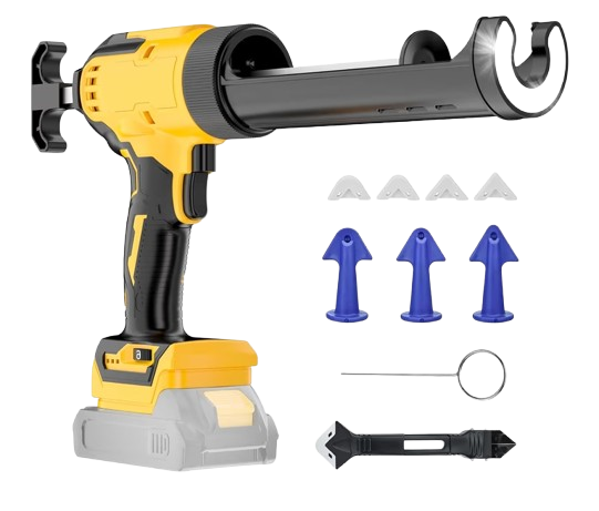A cordless caulking gun is a convenient and efficient tool designed to apply sealants, adhesives, and caulk with precision and ease. Powered by a rechargeable battery, it eliminates hand fatigue and provides consistent flow control for smooth, even application. The ergonomic handle ensures comfortable use during extended tasks, while the variable speed trigger allows better control over material output. It is ideal for home repairs, construction projects, and DIY applications on surfaces like windows, doors, tiles, and joints. Durable construction ensures long-lasting performance, making it suitable for both professionals and homeowners.