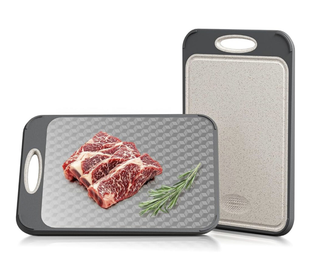 A cutting board is a must-have kitchen essential designed to provide a safe and stable surface for food preparation. Made from durable materials like wood, plastic, bamboo, or glass, it protects countertops from knife damage. Ideal for chopping vegetables, slicing meat, dicing fruits, and more. Many boards include juice grooves to catch liquids and prevent messes. Non-slip edges or feet offer added safety during use. Easy to clean, with some models being dishwasher-safe for convenience. Available in various sizes and shapes to suit different cooking needs. Color-coded options help prevent cross-contamination. A cutting board ensures clean, efficient, and organized meal prep every time.