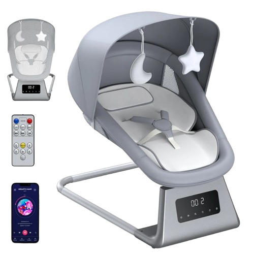 An electric baby rocker offers a soothing and convenient way to calm your little one while keeping your hands free. It features gentle automated rocking motions that mimic a parentβs comforting sway, helping babies relax and fall asleep faster. With multiple speed settings and adjustable angles, it caters to your babyβs comfort and needs throughout the day. Soft, cushioned seating and secure harness straps ensure safety and coziness during use. Many models include built-in music, lullabies, or white noise to further soothe your baby. Its compact and foldable design makes it easy to store or carry for travel. The rocker is powered by either batteries or an adapter for flexible use anywhere in the home. Durable, easy-to-clean fabrics make maintenance simple for busy parents. Combining safety, comfort, and convenience, an electric baby rocker is an essential companion for modern parenting.