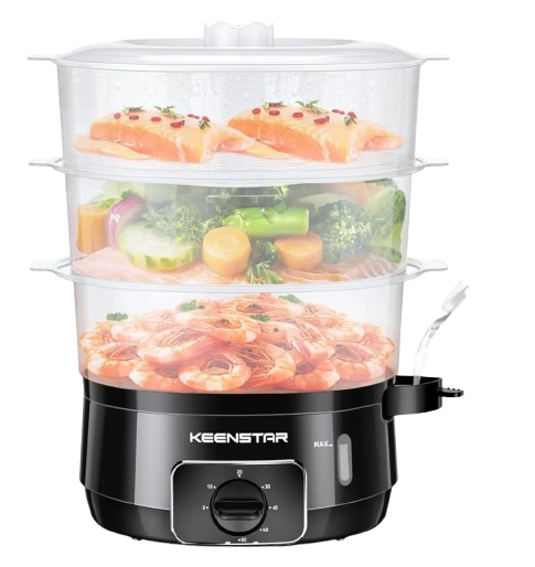 An electric food steamer is a convenient kitchen appliance designed for healthy and oil-free cooking. It uses steam to gently cook food, preserving nutrients, natural flavors, and textures. With multiple stackable tiers, it allows you to cook different dishes like vegetables, rice, fish, or chicken at the same time. The transparent containers make it easy to monitor the cooking process without lifting the lid. Its digital timer and auto shut-off feature ensure safe and precise cooking every time. Compact yet spacious, it suits both small and large families. Easy to use and clean, it simplifies meal preparation. Energy-efficient and versatile, itβs perfect for everyday cooking. An ideal choice for those seeking a healthier lifestyle with minimal effort.