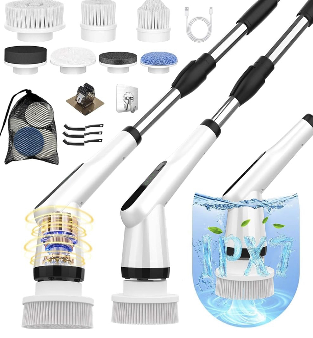 An electric spin scrubber is a powerful cleaning tool designed to make scrubbing faster and easier. It features a rotating brush head that effortlessly removes dirt, grime, and soap scum. Ideal for cleaning tubs, tiles, floors, sinks, and other hard surfaces. Comes with interchangeable brush heads for different cleaning needs. Rechargeable battery offers cordless convenience and extended use. Ergonomic handle and adjustable extension make it easy to reach high or tight spaces. Waterproof design ensures safe use in wet areas. Saves time and reduces the physical effort of manual scrubbing. The electric spin scrubber delivers a deep clean with minimal hassle.