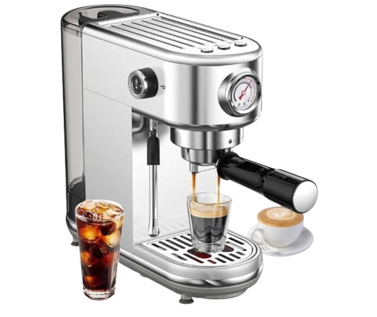 An espresso machine is a compact and powerful appliance designed to brew rich, aromatic coffee with professional-quality results at home or in cafΓ©s. It uses high pressure to force hot water through finely ground coffee, extracting bold flavor and a smooth crema on top. Most espresso machines feature durable construction, precise temperature control, and user-friendly buttons or dials for easy operation. Many models include a built-in milk frother or steam wand, making it simple to prepare lattes, cappuccinos, and other specialty drinks. With its sleek design and reliable performance, an espresso machine is an excellent choice for coffee lovers who enjoy barista-style beverages anytime.