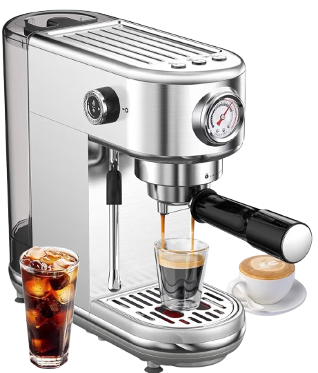 An espresso machine is a powerful kitchen appliance designed to brew rich, flavorful espresso at home or in the office. It forces hot water through finely ground coffee beans to create a concentrated shot of espresso. Many models feature built-in grinders, milk frothers, and programmable settings for convenience. Ideal for making lattes, cappuccinos, and macchiatos, it brings cafΓ©-style coffee to your fingertips. Its sleek design fits neatly on countertops and adds a touch of elegance to any kitchen. Easy-to-use controls make it perfect for both beginners and coffee enthusiasts. Stainless steel components ensure durability and easy cleaning. Enjoy barista-quality coffee anytime with your personal espresso machine.