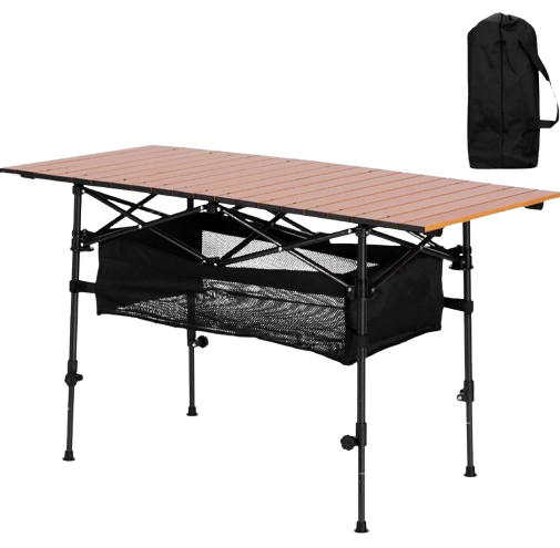 This folding camping table is a versatile and lightweight addition to your outdoor gear. Designed for convenience, it features a quick setup mechanism that allows you to assemble or fold it down in seconds. The compact design ensures it fits easily in car trunks or backpacks. Made from durable aluminum or steel, it offers a sturdy surface for meals, games, or gear. Its weather-resistant top makes it ideal for various terrains and climates. Adjustable legs provide stability on uneven ground. The table includes a carry handle or bag for easy transport. Ideal for camping, picnics, beach trips, and tailgating. A reliable companion for all your outdoor adventures.