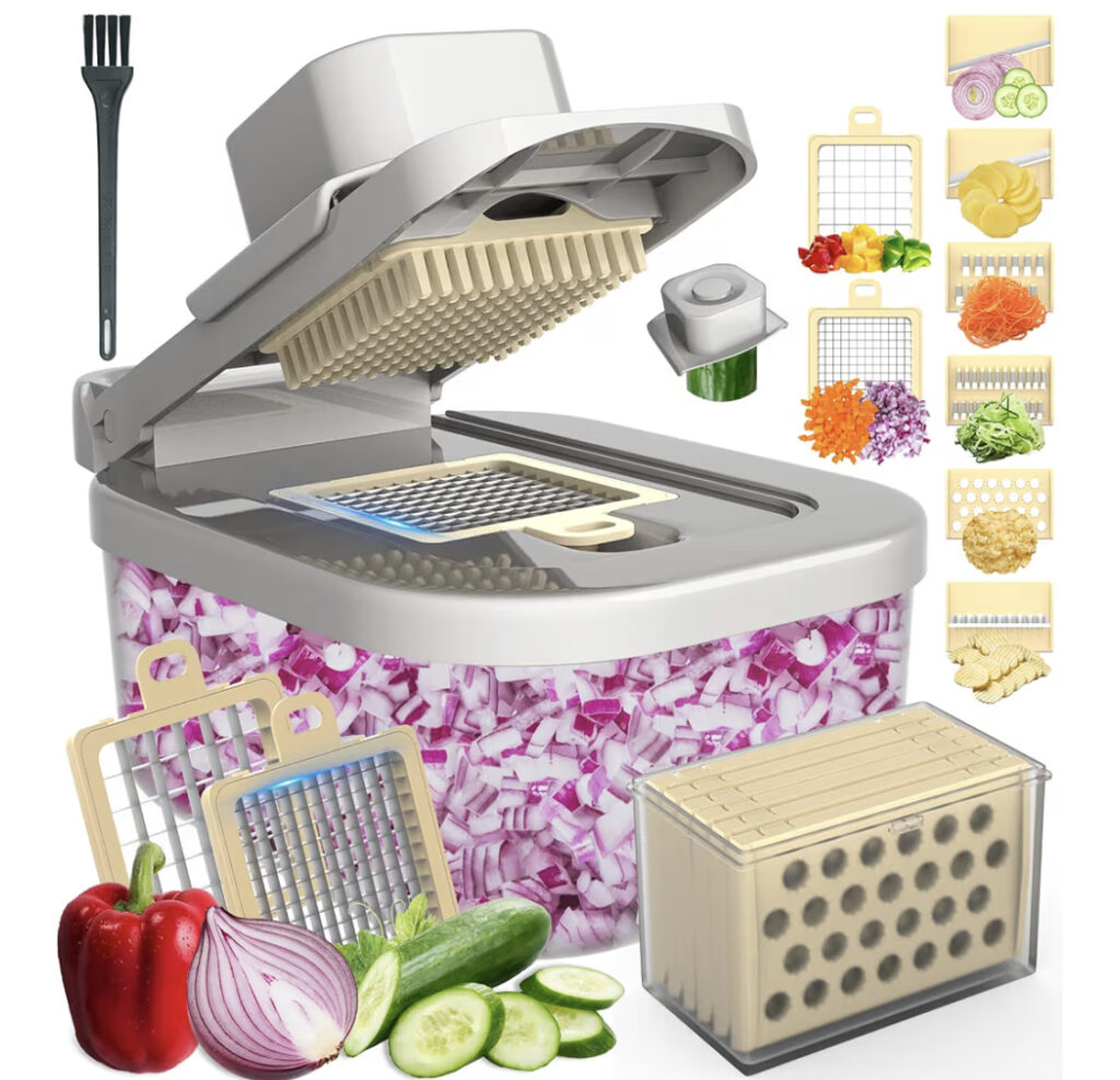 This food chopper with container makes meal prep quick and effortless. Equipped with sharp stainless steel blades, it chops vegetables, fruits, nuts, and more in seconds. The built-in container keeps your countertop mess-free and ingredients neatly contained. Its compact design is perfect for small kitchens or on-the-go use. Easy to clean with removable parts that are dishwasher safe. Non-slip base ensures stability while chopping. Great for making salsas, salads, or prepping stir-fry ingredients. Saves time and reduces knife work. A must-have tool for any busy kitchen!