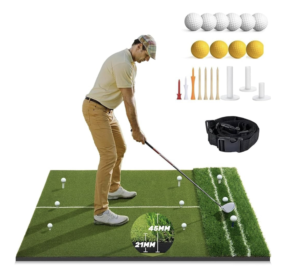 A golf hitting mat lets you practice your swing anywhere, anytime. Designed to simulate real turf, it provides a realistic feel for driving, chipping, and putting. The durable surface withstands repeated hits without tearing or fraying. Most mats feature anti-slip rubber bottoms to keep them in place during use. Ideal for indoor and outdoor practice sessions. Many come with built-in tee holders or pre-cut tee holes. Portable and easy to roll up for storage or travel. Helps improve consistency and accuracy without damaging your lawn. A must-have training tool for golfers of all skill levels.