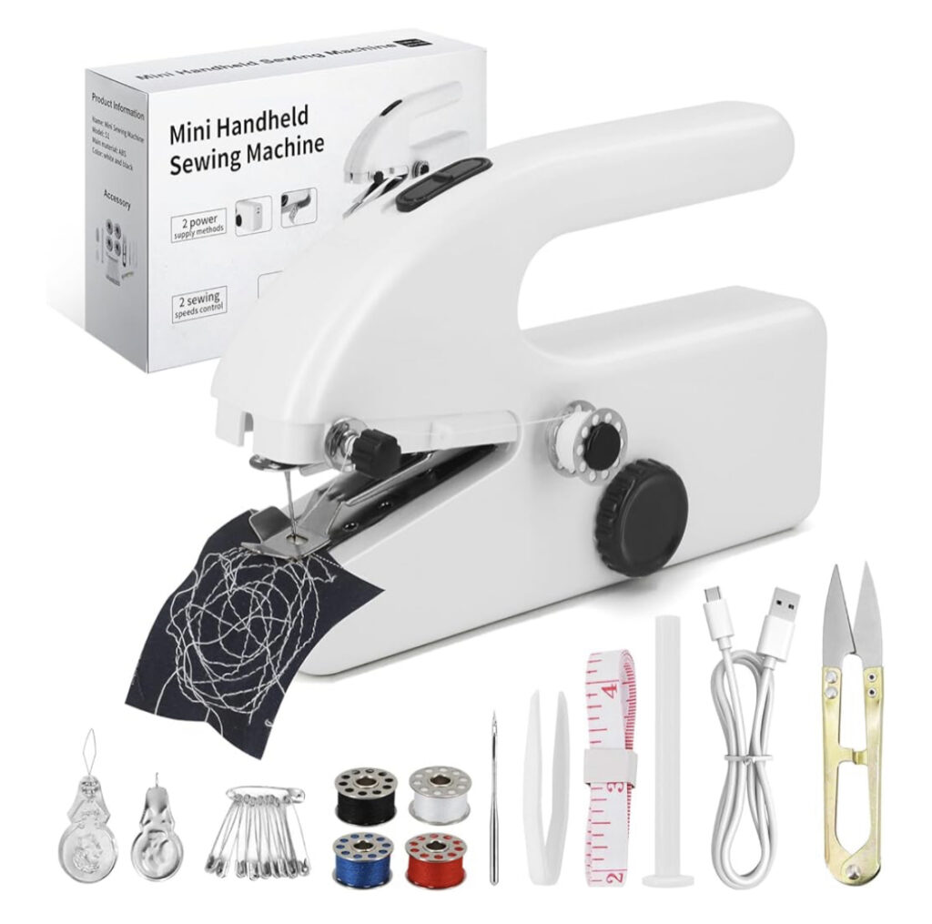 A handheld sewing machine is a compact, portable tool perfect for quick repairs and small sewing projects. Lightweight and easy to operate, making it ideal for beginners and on-the-go fixes. Can stitch fabrics like cotton, denim, and silk with ease. Great for hemming, patching, or altering clothes without using a full-size machine. Battery-operated or USB-powered for cordless convenience. Fits comfortably in hand for precise control and maneuverability. Includes basic accessories like thread, needles, and bobbins. Perfect for travel, emergency fixes, or tight spaces. A handheld sewing machine offers simple, efficient sewing anytime, anywhere.