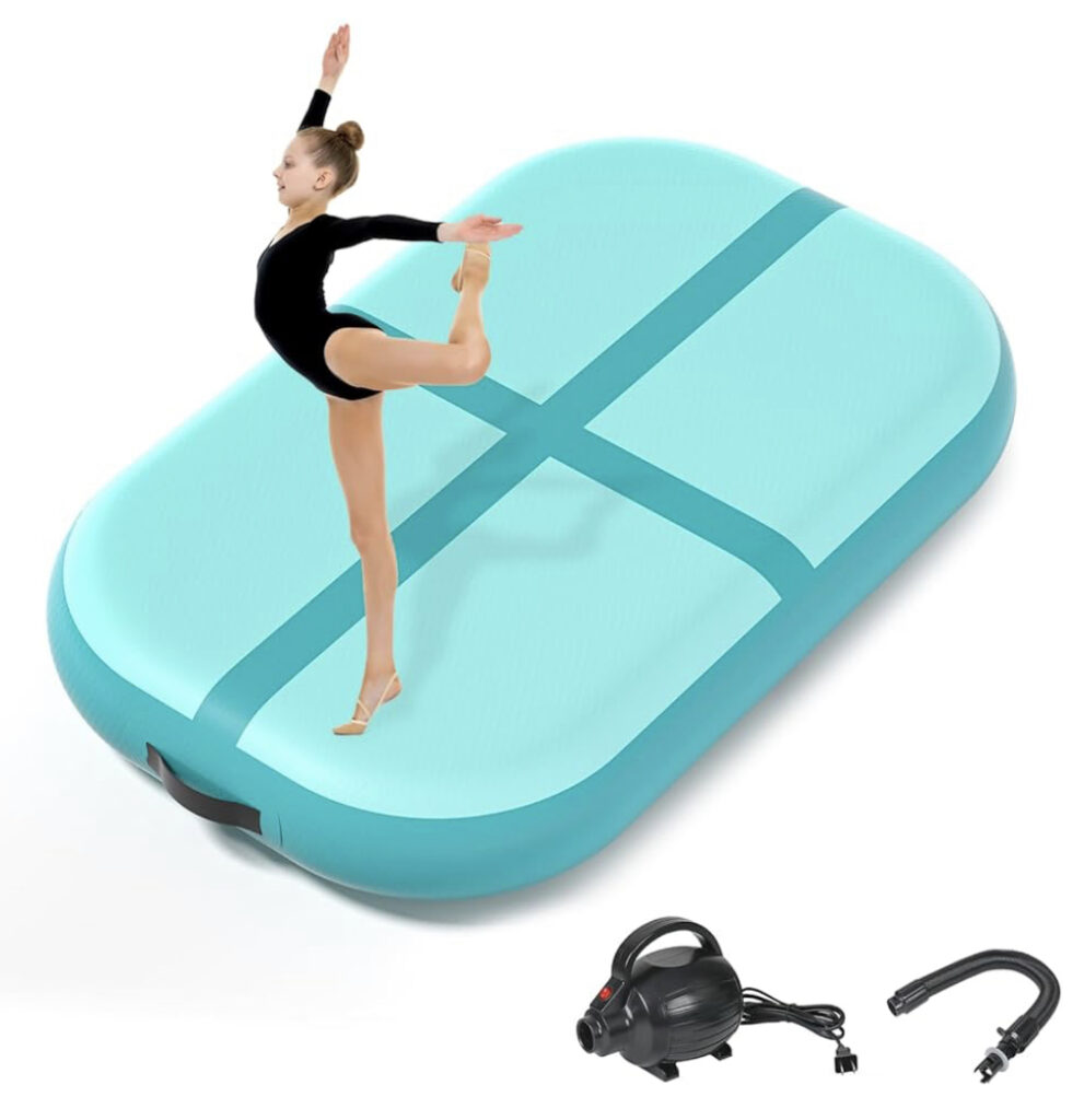 An inflatable gymnastics mat is a versatile training tool designed for tumbling, cheerleading, yoga, and home workouts. Made from durable, waterproof PVC material, it provides a soft yet firm surface for safe practice. Its air-cushioned support helps reduce the risk of injuries during flips and jumps. Easy to inflate and deflate with an electric pump, it offers quick setup and storage. Suitable for both indoor and outdoor use. The mat’s non-slip surface ensures stability while training. Lightweight and portable, it’s great for home, gym, or travel. Available in various sizes to match different skill levels and activities. A fun, functional addition to any fitness routine.