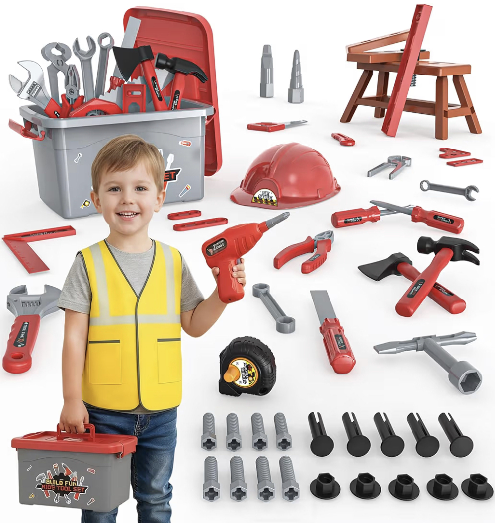 A kids tool set is a fun and educational toy designed to spark creativity and hands-on learning. It includes child-safe versions of tools like hammers, screwdrivers, wrenches, and saws. Made from durable plastic or wood, the tools are lightweight and easy for small hands to use. Many sets come with a toolbox or carrying case for easy storage. Ideal for pretend play, it helps improve motor skills and hand-eye coordination. Encourages problem-solving and role-playing as kids mimic real-life construction. Some sets feature working parts for added realism. Great for both solo and group play. Perfect gift for little builders aged 3 and up.