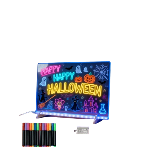 The LED Note Board is a stylish and functional way to jot down reminders, messages, or creative doodles. Its bright, energy-efficient LED lights illuminate the writing surface, making your notes clearly visible even in the dark. Designed with a sleek and modern frame, it adds a touch of elegance to any desk, room, or workspace. You can easily write or erase messages using the included fluorescent markers. Perfect for students, offices, cafΓ©s, or home decor, itβs both practical and fun to use. The board features USB or battery power options for versatile use. Lightweight and portable, it can be placed anywhere for convenience. Itβs a great way to stay organized while adding a creative touch to your environment. Ideal for daily reminders, to-do lists, or inspirational quotes that shine bright every day.