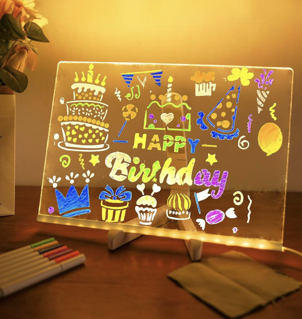 An LED note board with colors is a fun and functional way to leave messages, reminders, or doodles with a vibrant glow. It features a clear writing surface illuminated by colorful LED lights for eye-catching visibility. Includes fluorescent markers for writing that pops against the lighted background. Offers multiple lighting modes, such as flashing, fading, or steady glow. Great for kidsβ rooms, home offices, or cafes to display notes or menus. USB or battery-powered for flexible placement anywhere. Easy to erase and reuse, making it eco-friendly. Lightweight and compact for desks, countertops, or walls. The LED note board adds creativity and brightness to everyday messages.