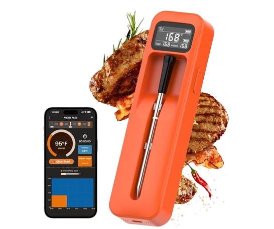 A meat thermometer is a precise kitchen tool designed to help you cook meats to perfect doneness every time. It features a sharp stainless-steel probe that quickly penetrates meat and delivers accurate temperature readings within seconds. The easy-to-read digital display ensures you can monitor cooking progress without guesswork. Its wide temperature range makes it suitable for grilling, roasting, smoking, and frying various types of meat. Many models include preset temperature settings for beef, poultry, fish, and more. A built-in alarm alerts you when your desired temperature is reached for safe cooking. Its compact, lightweight design makes it convenient to handle and store. Whether you’re a home cook or a BBQ enthusiast, it enhances cooking confidence and consistency. With this thermometer, achieving juicy, flavorful, and perfectly cooked meals becomes effortless.