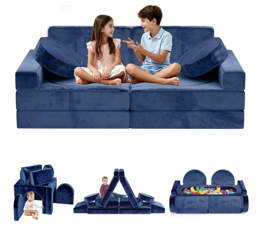 A modular kids play couch is a versatile and fun piece of furniture designed to spark imagination and creativity. It includes multiple soft foam pieces that can be rearranged into forts, tunnels, slides, or cozy lounging spots. Covered in kid-friendly, washable fabric, itβs perfect for active play or quiet reading time. Lightweight and easy to move, children can safely build and explore on their own. Ideal for indoor playrooms or bedrooms. Encourages motor skills, spatial awareness, and imaginative play. Available in fun colors to match any decor. Built for durability and comfort. A perfect blend of furniture and fun for kids.