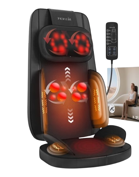This neck and back massager offers soothing relief with its powerful deep-kneading nodes designed to melt away tension in minutes. Its ergonomic shape fits naturally around the neck, shoulders, and back, delivering targeted pressure exactly where you need it. Featuring optional heat therapy, it enhances relaxation by warming tight muscles and improving blood circulation. The adjustable intensity levels let you customize your massage experience from gentle comfort to deep, invigorating pressure. Soft, breathable fabric ensures long-lasting comfort during every session. Easy-to-use control buttons make switching modes simple and convenient. The massager comes with both home and car adapters, so you can enjoy relaxation anywhere. Built with auto shut-off for safety, it provides peace of mind during use. Perfect for daily stress relief, muscle recovery, and easing stiffness after long work hours.