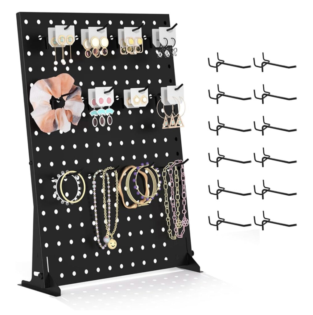 A pegboard display stand is a versatile and practical solution for organizing and showcasing items. Ideal for retail, craft shows, or home use to display tools, accessories, or merchandise. Made from durable materials like metal or plastic for long-lasting use. Features a perforated board design that fits standard hooks and pegs. Freestanding and easy to move, offering flexible placement options. Provides excellent visibility and access to displayed items. Compact design saves space while maximizing storage efficiency. Easy to assemble and customize to suit various needs. A pegboard display stand combines function and convenience for tidy and attractive organization.