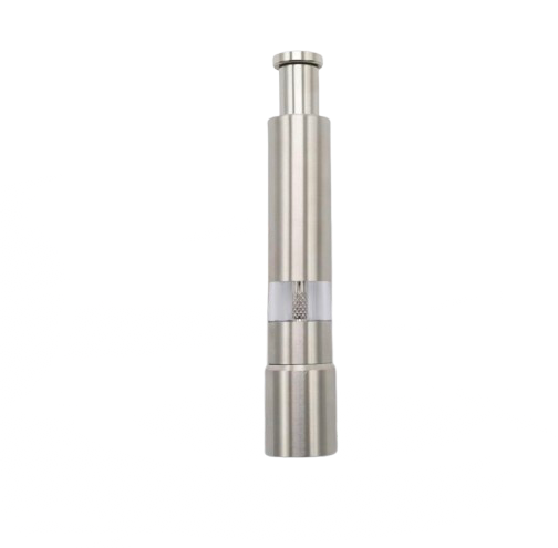 A pepper grinder is a handy kitchen tool for freshly ground pepper anytime. It enhances the flavor of meals by providing coarse or fine pepper as needed. Most grinders feature adjustable settings for different grind sizes. Made from materials like stainless steel, wood, or acrylic for durability and style. Easy to refill with a simple twist or open-top design. Manual and electric options are available to suit user preferences. Its compact size makes it ideal for tabletop or kitchen use. Adds a touch of elegance to dining setups. A must-have for cooks and spice lovers alike.