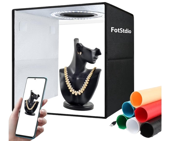 A photo box for photography is a compact, portable lighting studio designed to help you capture professional-quality product photos with ease. It features built-in LED lights that provide bright, even illumination, reducing shadows and glare for clear, true-to-color images. The enclosed design helps control lighting conditions, while interchangeable or foldable backgrounds allow you to match different styles and products. Ideal for small items such as jewelry, cosmetics, electronics, or handmade crafts, a photo box is easy to set up, lightweight, and perfect for home studios, online sellers, and content creators who want clean, polished photos without complex equipment.