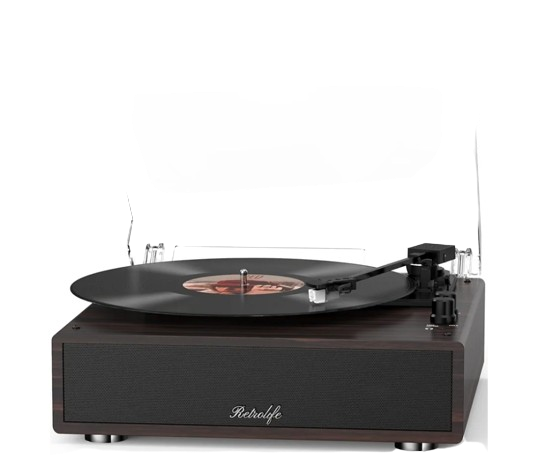 Experience timeless music with this stylish record player that blends vintage charm with modern technology. Its built-in stereo speakers deliver rich, clear sound, making every vinyl come alive. The 3-speed turntable supports 33, 45, and 78 RPM records, accommodating your entire collection. With Bluetooth connectivity, you can also stream your favorite digital playlists wirelessly. The classic suitcase design with a carry handle offers portability and a retro aesthetic. Easy-to-use controls make it perfect for beginners and audiophiles alike. RCA output allows connection to external speakers for a powerful audio experience. A headphone jack is included for private listening. This record player is a perfect mix of nostalgia and innovation for any music lover.