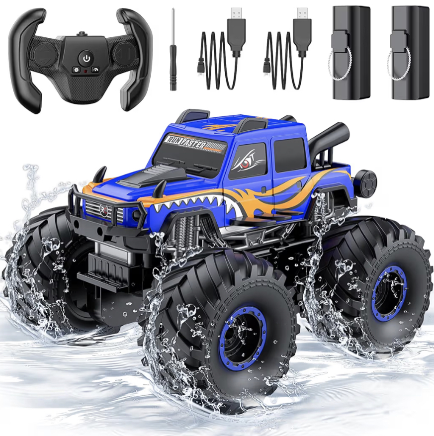 A remote control monster truck delivers high-speed thrills and rugged off-road fun. Built with oversized tires and a powerful motor, it conquers rough terrain with ease. Its durable design withstands bumps, jumps, and crashes. Equipped with a responsive remote for smooth steering and acceleration. Perfect for both indoor and outdoor play, from driveways to dirt trails. Rechargeable battery ensures longer playtime without frequent replacements. Kids and adults alike enjoy the adrenaline rush of racing and stunts. Many models come with cool LED lights for added excitement. A great gift for adventure-loving RC enthusiasts.