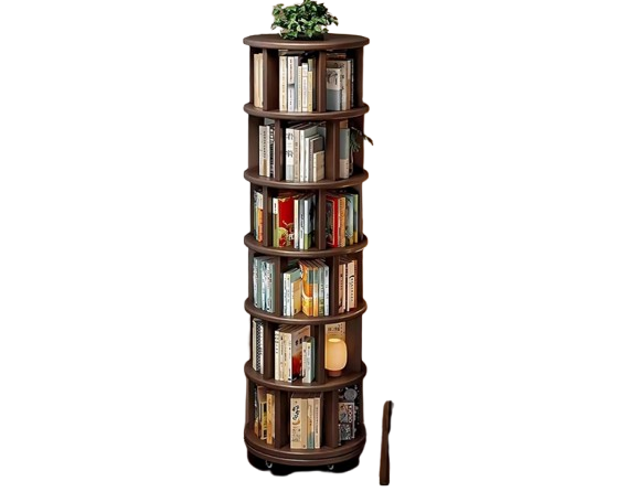 This rotating bookshelf brings smart organization and modern style together for a functional upgrade to any room. Designed with a smooth 360Β° rotating base, it allows effortless access from every angle, making it perfect for books, dΓ©cor pieces, plants, or collectibles. Its multi-tiered design offers generous storage while maximizing vertical space, ideal for small apartments, offices, kidsβ rooms, or study areas. Crafted from durable, sturdy materials, it supports heavy loads and stays stable while turning. The clean, minimalist look blends beautifully with both contemporary and classic interiors. Easy to assemble and simple to maintain, this shelf is built to last. Use it as a space-saving display unit, a compact library, or a stylish organizer. A unique statement piece that adds character and convenience to any space. Enjoy a clutter-free area with elegant, rotating accessibility.