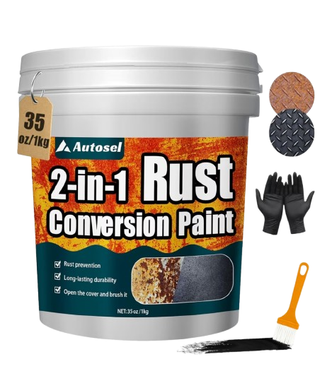 Rust Converter Paint is a powerful and effective solution designed to stop rust in its tracks and restore metal surfaces with ease. This advanced formula chemically converts rust into a stable black protective coating, eliminating the need for tedious sanding or grinding. Ideal for cars, gates, tools, machinery, and outdoor metal surfaces, it provides long-lasting protection against corrosion and moisture. The fast-drying formula creates a smooth, paint-ready surface that can be top-coated for a clean, polished finish. Easy to apply with a brush or spray, it reaches deep into rusted areas for maximum coverage. Perfect for DIY users, mechanics, and restoration enthusiasts looking to save time and money. Suitable for iron, steel, and other metal surfaces, ensuring durable and professional-quality results. Bring old, rusted metal back to life with this reliable rust converter paint.