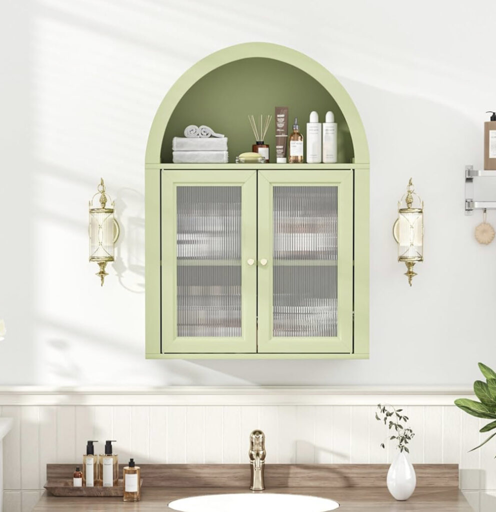 A green over-the-toilet storage cabinet is a stylish and space-saving solution for bathroom organization. Designed to fit snugly above standard toilets, it utilizes vertical space efficiently. The calming green color adds a fresh, natural touch to your bathroom decor. Features shelves and cabinets to store toiletries, towels, and bathroom essentials. Made from durable materials to withstand humidity and daily use. Doors may include knobs or magnetic closures for easy access. Easy to assemble and install with a stable, freestanding or wall-mounted design. Great for small bathrooms or apartments with limited storage. This cabinet combines function and charm in one compact piece.
