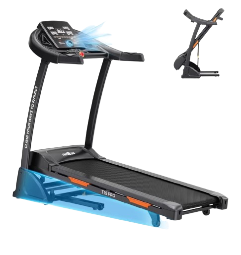 The treadmill is a versatile fitness machine designed to bring the gym experience into your home. It features a sturdy frame and a durable running belt that ensures smooth, consistent motion for walking, jogging, or running. With adjustable speed and incline settings, users can customize workouts to match their fitness level and goals. The treadmill is equipped with a digital display that tracks time, distance, speed, calories burned, and heart rate. Many models include built-in workout programs for variety and motivation. Safety features like an emergency stop button and side handrails provide added protection. Its compact design often allows for folding, saving space when not in use. Quiet yet powerful motors make it suitable for home environments without disturbing others. Overall, it offers an efficient, low-impact cardiovascular workout to support overall health and fitness.