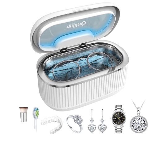 The ultrasonic jewellery cleaner uses high-frequency sound waves to gently and effectively remove dirt, oils, and residue from jewellery without causing damage. Simply add water and a mild cleaning solution, place your rings, necklaces, earrings, or watches inside, and let the powerful ultrasonic vibrations reach into tiny crevices that brushing cannot. Compact and easy to use, it restores shine to gold, silver, diamonds, and other delicate items in minutes, making it ideal for everyday home use.